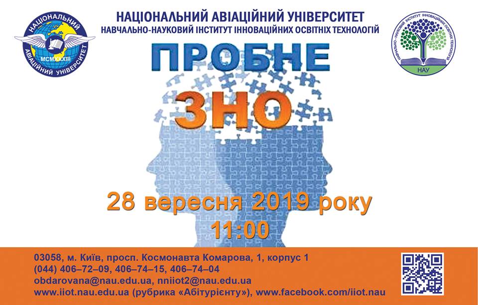 Національний авіаційний університет запрошує учнів 11 класів закладів середньої освіти, закладів професійно-технічної освіти, студентів коледжів (випускників–2020) та випускників минулих років взяти участь у пробному ЗНО–2019.