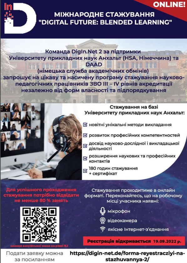 Так, за програмою міжнародного стажування педагогічних і науково-педагогічних працівників ЗВО ІІI – IV рівнів акредитації "DIGITAL FUTURE: BLENDED LEARNING", яке проходило за підтримки Університету прикладних наук Анхальт (Hochshule Anhalt, HSA) на базі DUDIZ (німецько-український центр цифрових інновацій) підвищив кваліфікацію застосування цифрових технологій при дистанційному викладанні лекційних матеріалів професор кафедри Філяшкін Микола Кирилович.