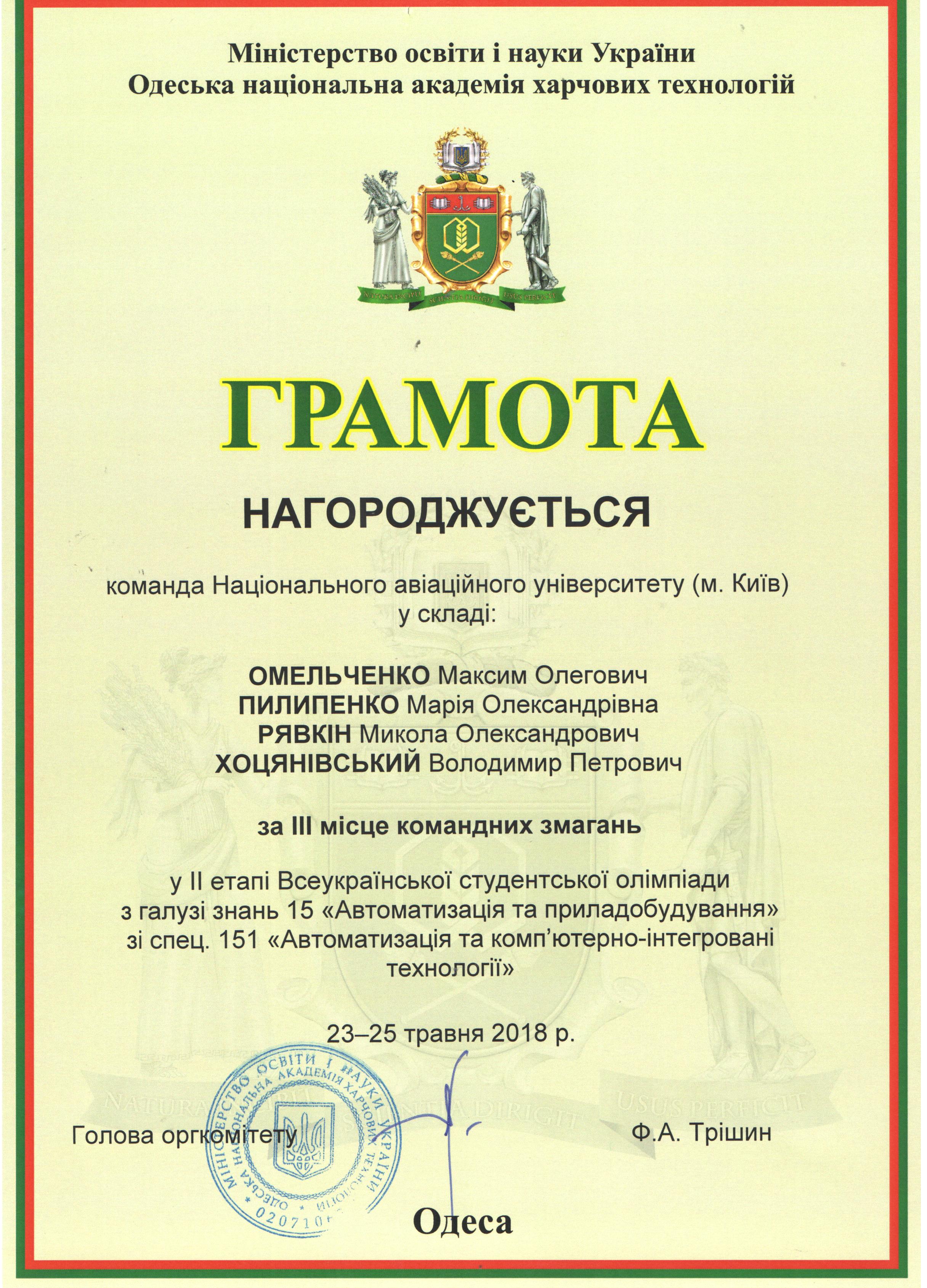 ІІ-й етап Всеукраїнської олімпіади з «Автоматизації та комп’ютерно-інтегрованих технологій»